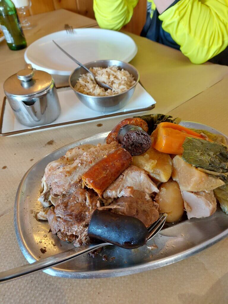 Keď už som spomenula ananás, spomeniem aj veľmi tradičné jedlo „Cozido das Furnas“, ktoré môžete ochutnať v mestečku Furnas na ostrove Sao Miguel. My sme tam boli v reštaurácii Tony. O čo teda ide? Ide o jedlo (mäso a zelenina) pripravené na vulkanickej pare. Všetky ingrediencie sa vložia do hrnca, ten sa zakope do zeme v oblasti s vulkanickou aktivitou a varí sa 5 až 7 hodín pomocou geotermálneho tepla zo sopky. Celkom cool, však? No musím sa priznať, že nám to jedlo až tak nechutilo, prišli mi príliš mäkké, až rozvarené. Ale za ochutnanie to stálo.