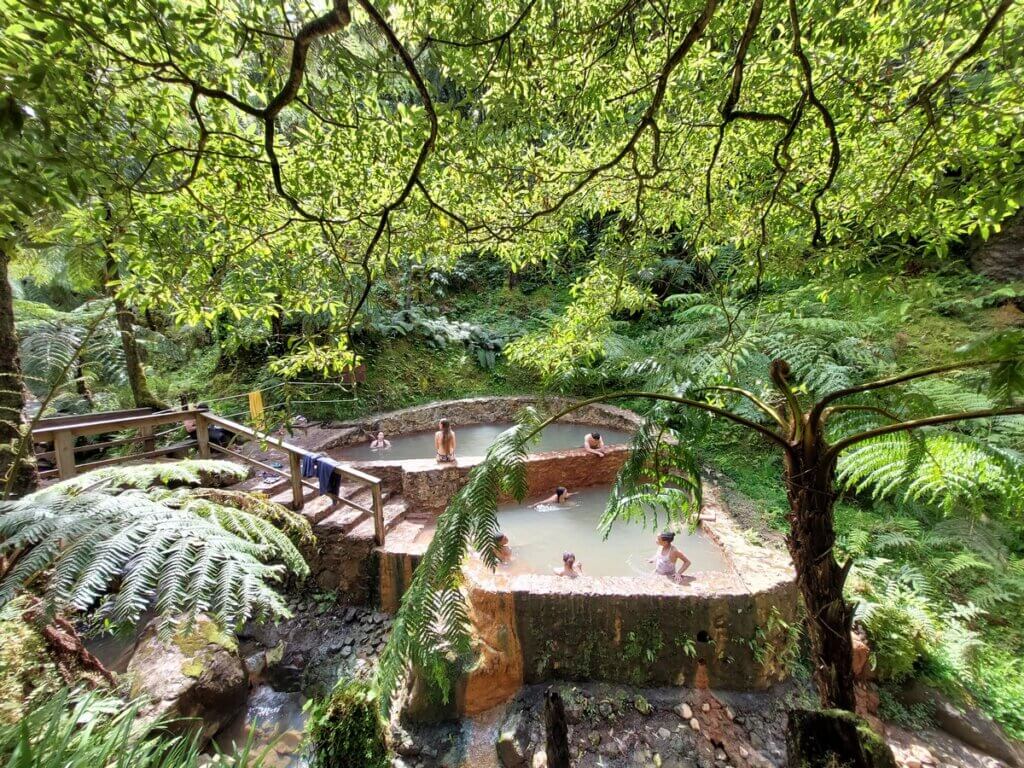 A keď je už reč o sopkách tak spomeniem, že na Sao Miguel môžes nájsť niekoľko horúcich termálnych prameňov, v ktorých vieš zresetovať telo aj myseľ. Azory ležia na rozhraní tektonických dosiek, čo teda spôsobuje, že horúce minerálne vody vyvierajú na povrch. My sme navštívili dve miesta. Caldeira Velha, vstup 11 eur, odporúčam rezervovať vopred. Vstup je len na 90 min a je to veľmi populárne miesto. A park Terra Nostra, vstup 17 eur, lístok sme kúpili na mieste a cena zahŕňa aj návštevu obrovskej botanickej záhrady.