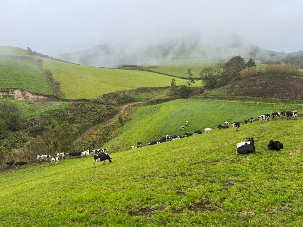 Na Azoroch nájdeš takmer na každom kroku nejakú kravu. Dokonca sa vraví, že na Azoroch žije viac kráv než ľudí. Na ostrove Sao Miguel žije približne 135 000 obyvateľov a až okolo 150 000 kráv. Zhruba 1,1 až 1,4 kravy na jedného obyvateľa. Hoci to číslo nie je až tak výrazné ako napríklad na Novom Zélande s ovečkami (5 miliónov ľudí a 25 miliónov oviec), ale predsa. A čo je fajn, kravičky sa tam pasú vonku na lúkach a vraj aj preto kvalita ich mliečnych výrobkov je neporovnateľne vyššia.