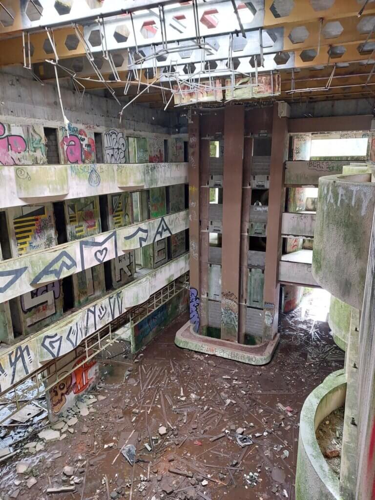 Na ostrove Sao Miguel pri výhliadke Miradouro do Rei na západe nájdeš mohutnú a celkom strašidelne vyzerajúcu budovu opusteného hotela. Ide o „Monte Palace Hotel“, ktorý bol otvorený v roku 1989 ako luxusný 5-hviezdičkový rezort s výhľadom na kráterové jazero v oblasti Sete Cidades. No kvôli nízkemu počtu turistov v tom čase, vysokými nákladmi na prevádzku a odľahlej polohe musel tento hotel o necelé dva roky zatvoriť. Prvých 20 rokov bola budova ako tak kontrolovaná, no potom ho prestali monitorovať a dnes v ňom nenájdeš okrem grafitov a bordelu nič. Dokonca ukradli aj samotné výťahy. Jediné, čo tam nájdeš sú krásne výhľady zo strechy na Atlantik a jazerá Sete Cidades. Samozrejme, že len v prípade dobrého počasia.